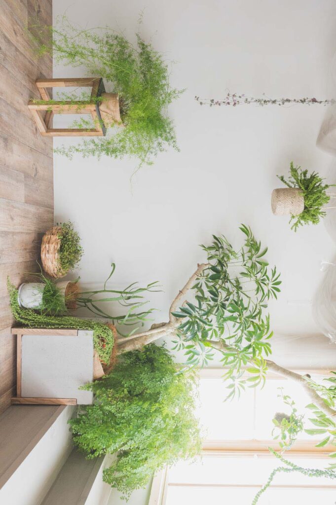 ナチュラルな撮影スペーススタジオ内のスペースは、観葉植物がほどよくレイアウトされたナチュラルな空間に。肩の張らないおうちのお部屋にいるような感覚で、撮影に参加していただけます。