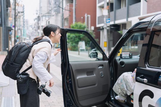 タクシーでスタジオお戻り(訪問着レンタルの場合、スタジオお戻り後にお着替えとなります。)